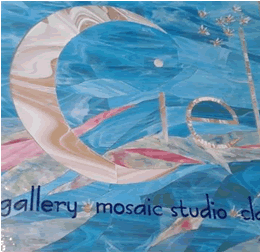 Today I became official, with the (six-hour) mounting of Ciel’s sign, and my first (and last) adventure with stained glass. I can’t tell you how giddy I am to 1) have that nine-square-foot sign off my living room floor, 2) to give my slit fingers and gouged nails a break from the grinder, 3) to have survived the deadly plexi-flex , and 4) to have kept the smile nailed in place through four mounting trials and three dismountings so the space could be adjusted, and adjusted, and adjusted. Mounted photos to follow shortly on my flickr site. Stained glass on plexiglas, with crystal point stars, ungrouted, mounted behind a clear glass pane.