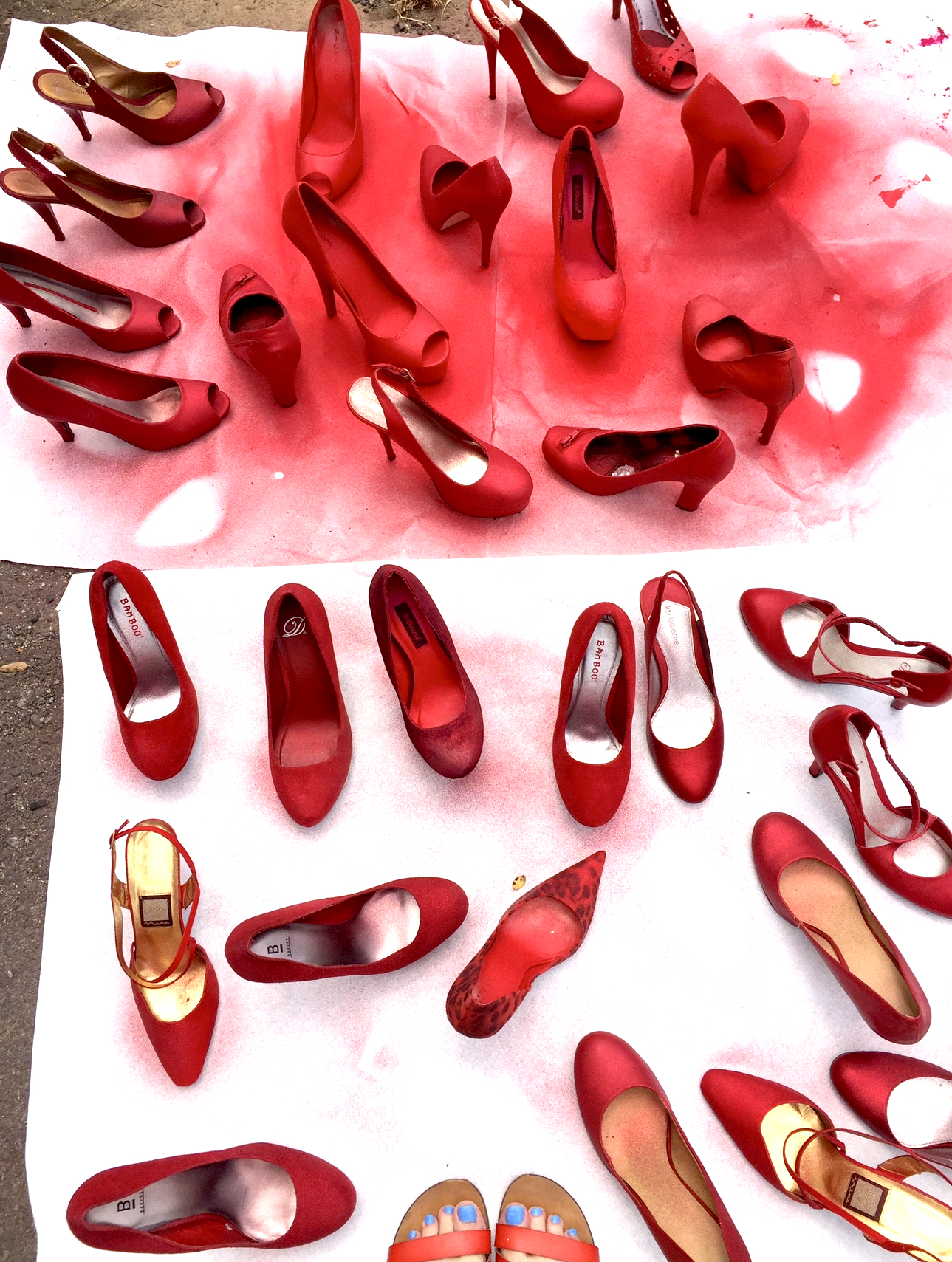 P.S. This display was created by Ciel Gallery in Charlotte several years ago as a teaser for an art exhibition. We drove to the nearest Goodwill and bought all the red shoes we could find, painted a few extras, and put on our Come Hither looks. A totally delicious evening!