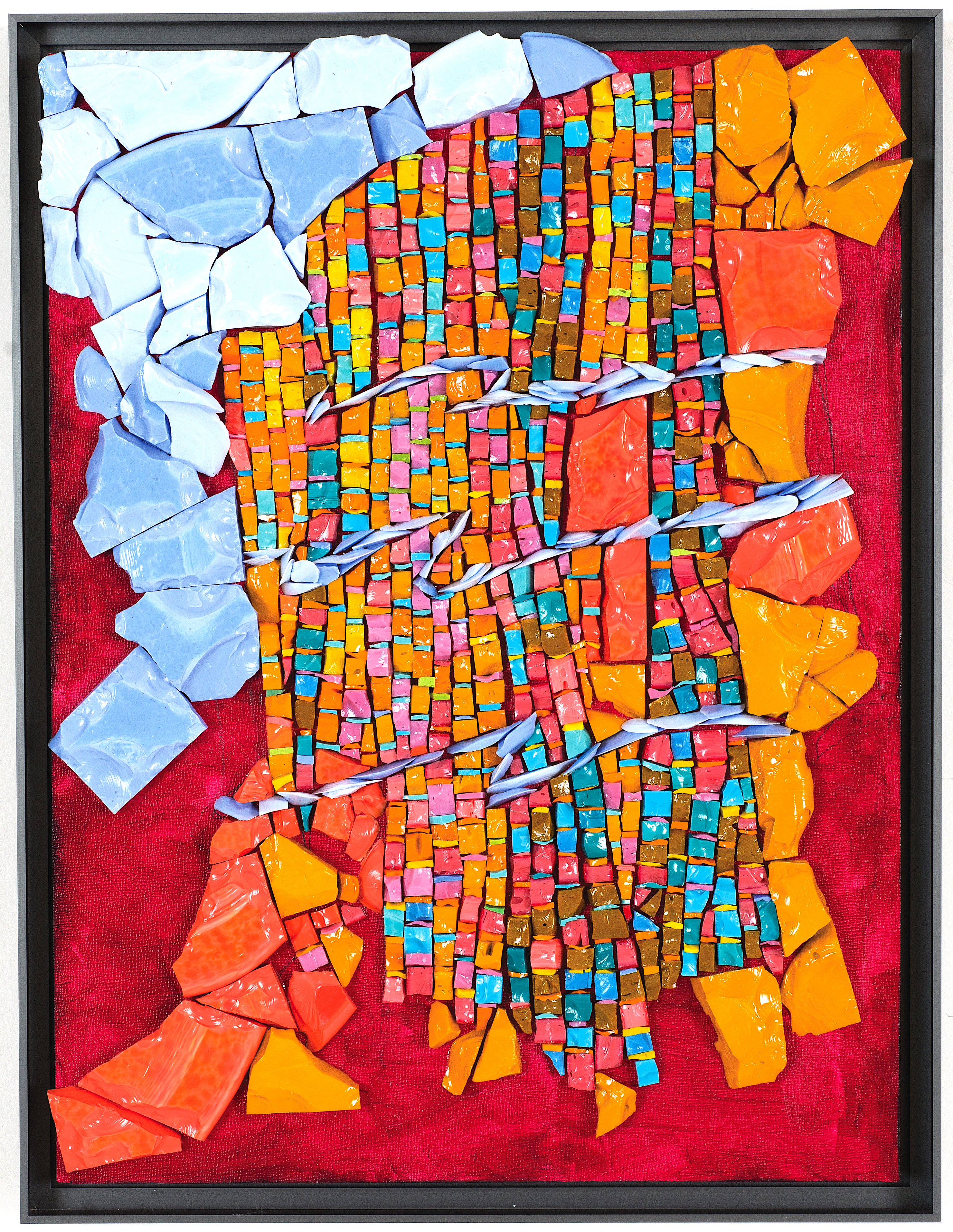 Colorado Dawn: AVAILABLE, 7″H and 13″ W, Mexican Smalti, Mexican Smalti Tortillas, Chopped and Divoted.